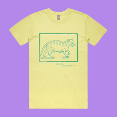 A soft, dry-humoured cat-lover tee featuring a medieval woodcut illustration of a very unimpressed feline and the phrase “excuse me. i must feed my cat.” Ideal for anyone who uses their cat as a legitimate exit strategy.